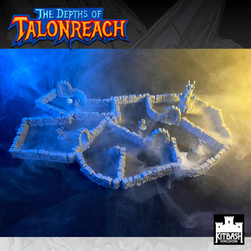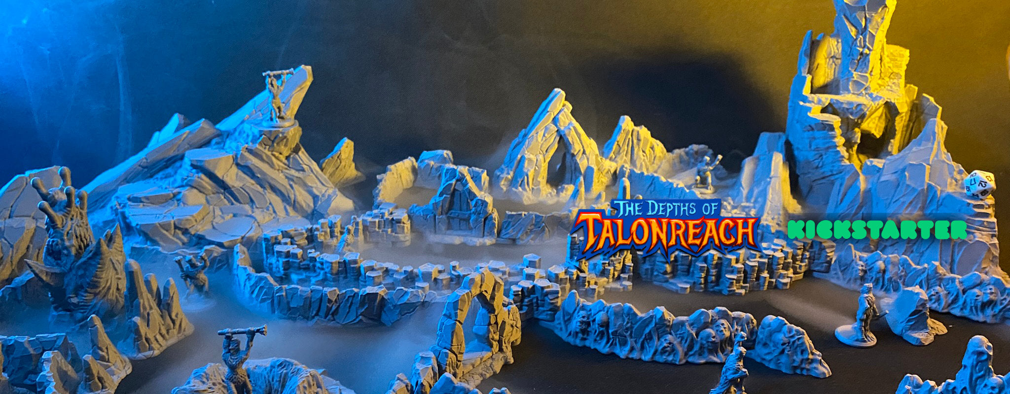 The Depths of Talonreach is a 3d printable modular tabletop set with exterior mountain tops and interior cave systems that are easy to print, easy to assemble and easy on the eyes.